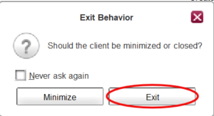 - Stop the local FAUbox client. Click “Exit” at the exit behavior window.
