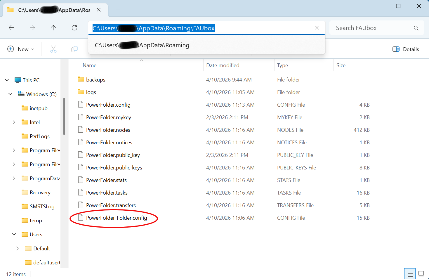- If you delete the config file (PowerFolder.config) the folders base path will be reset to the default (/home.local/<username>/FAUbox).