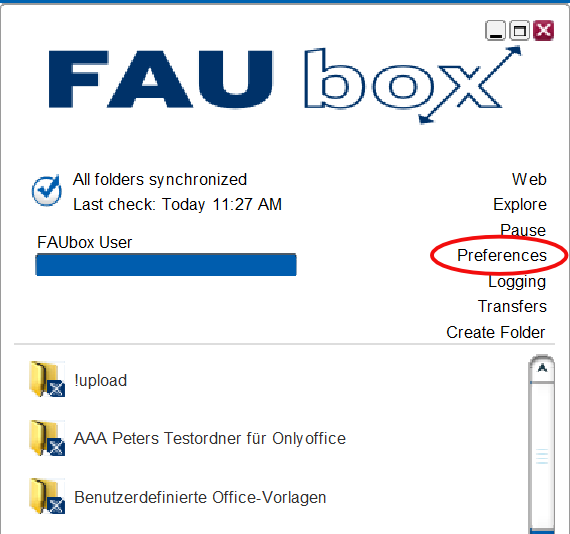 - Start the local FAUbox client again.
