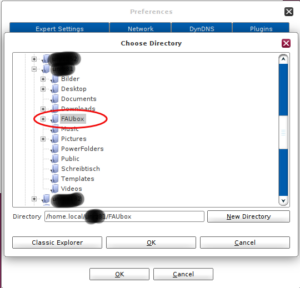 - A new window opens. Select the desired directory for the new FAUbox base path and confirm with OK.